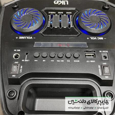 مجهز به نورپردازی داخلی، بدنه خوش ساخت از جنس پلاستیک با کیفیت، اتصال بی سیم توسط بلوتوث با برد ۱۰ متری امکان پشتیبانی از رادیو FM، دارای نمایشگر LED و کلیدهای فیزیکی متعدد به منظور مدیریت موسیقی، تغییر Mode و … امکان اتصال با سیم از طریق رابط جک ۳٫۵ میلی متری صدا، با پشتیبانی از فلش مموری و کارت حافظه جهت پخش موسیقی بهره مندی از ورودی میکروفن، توان واقعی (RMS) برابر با ۸ وات، همراه با میکروفون و ریموت کنترل برای انجام تنظیمات مختلف بهره مندی از توئیتر و دو عدد ووفر ۶٫۵ اینچ، تامین انرژی از طریق باتری داخلی لیتیومی با ظرفیت ۳۶۰۰ میلی آمپر ساعت و امکان شارژ مجدد میزان شارژدهی باتری حدود ۲ ساعت و ۵ دقیقه با حجم صدای ۱۰۰%، مدت زمان شارژ حدود ۶ الی ۸ ساعت توسط پورت سوزنی با ولتاژ ۵ ولت DC