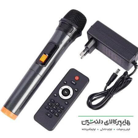 به همراه یک عدد میکروفون به منظور همخوانی به همراه موسیقی و ریموت کنترل جهت مدیریت دستگاه از راه دور