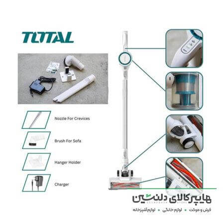 جارو شارژی توتال مدل TVLI2006 با قدرت یا توان 120 وات به بازار ابزارآلات ارائه می شود . سیم موتور این جارو شارژی تماما از جنس مس با کیفیت است . این جارو شارژی دارای یک عدد شارژر است که این شارژر دارای ولتاژ 220-240 ولت می باشد . متعلقات دیگر این جارو شارژی TOTAL شامل 1 عدد باطری ، سری لوله آب و سری تمیز کننده مبل می شود .
